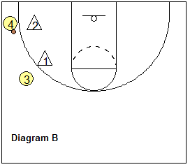 The drill begins with a coach or player standing at the top of the key with the ball. The defender starts in a low stance at the baseline, and on the coach’s command, sprints out to close out on the shooter. The shooter then passes the ball to a coach or a player standing on the wing, and the defender has to get to the wing player as quickly as possible in order to contest the shot.